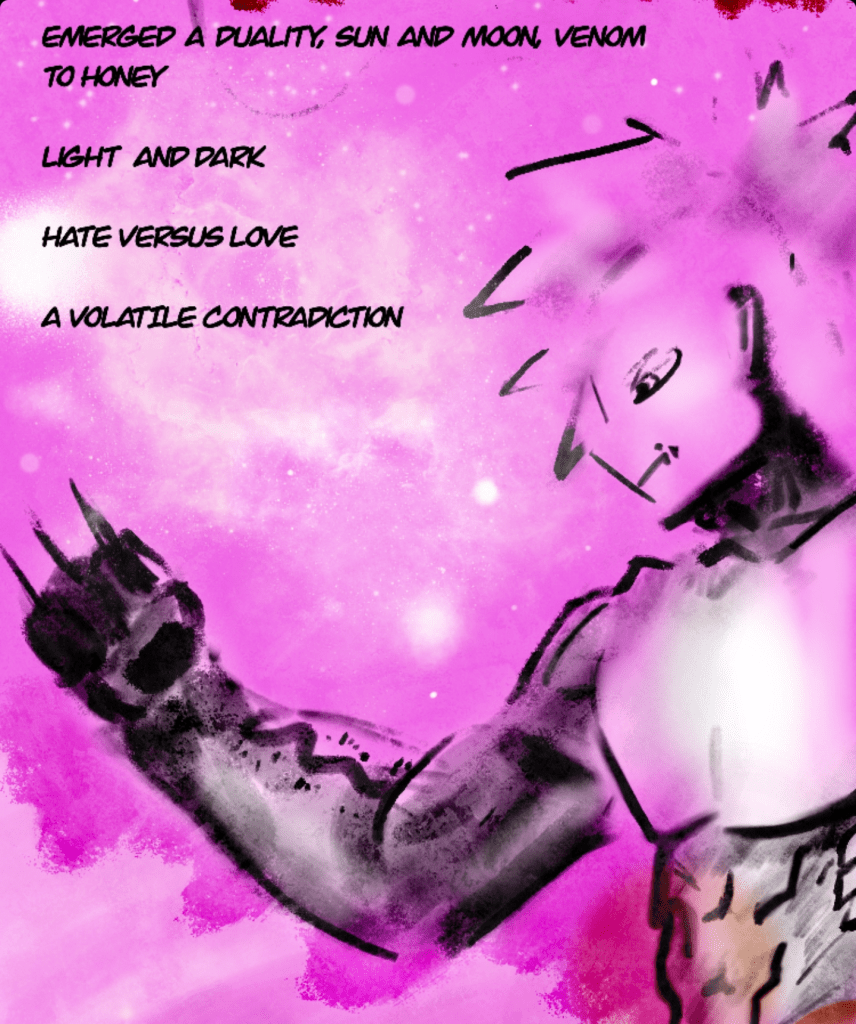This is me holding onto your rays of sunlight, demanding they intertwine their fingers with mine, my eyes cant handle light so bright but my heart can manage just fine. Your beauty makes me rise from the grave, like a sapling I’m given life to live once again. To breathe and to shudder in the wind as I once had, your warmth on my shoulders breathes air into my soul because you knew I needed it bad. But your air I could not swallow; nor your pride could I borrow, for our love was connected the day we filled ourselves with sorrow. Not from deceitful lies or the breaking of ties but from stories of our past of where our burdens now lie. In hopes for us to proceed as one, we leave our regrets on the tide like a loaded gun, all you have to do is pull the trigger, and one by one watch our pasts drift away in the glow of the setting sun. I feel your hand on mine, palm sweating with shine, a ray so heavy it pierces into time. Our paths crossed yet never did we find the answer to life and all that we left behind. So we love like there’s no tomorrow and lust like there’s no past, the moon and the sun forever waiting steadfast. Together dark and light we sit in the same sky, waiting for the day that we both could fly.
